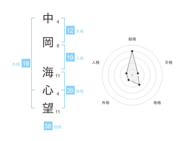 中岡 海心望さんを姓名の画数から五運を鑑定