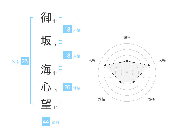 御坂 海心望さんを姓名の画数から五運を鑑定