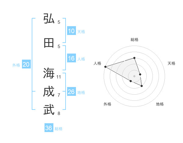 弘田 海成武さんの人格は16画の5点!