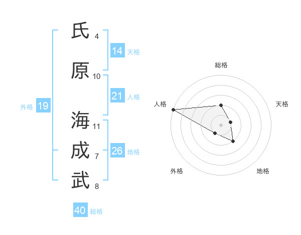 氏原 海成武さんの総格は40画の2点!