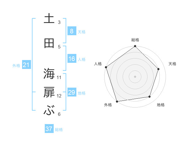 土田 海扉ぶさんを姓名の画数から五運を鑑定