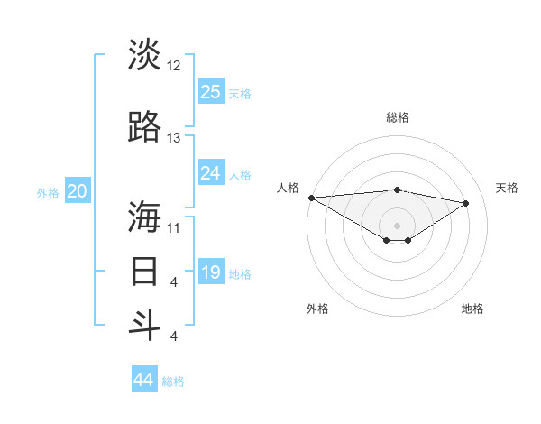淡路 海日斗さんの総格は44画の2点!