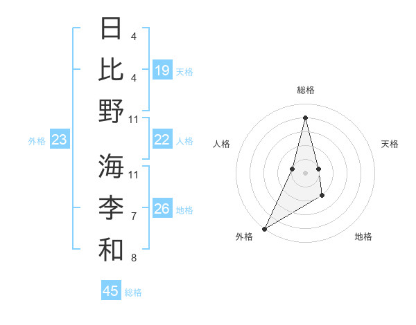 日比野 海李和さんを姓名の画数から五運を鑑定