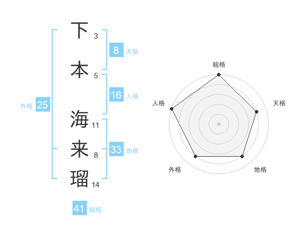 下本 海来瑠さんを姓名の画数から五運を鑑定