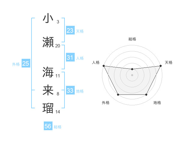 小瀬 海来瑠さんの天格は23画の5点!
