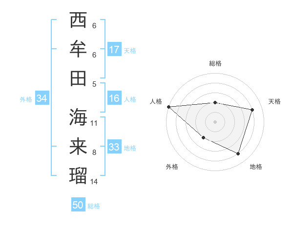 西牟田 海来瑠さんの天格は17画の4点!