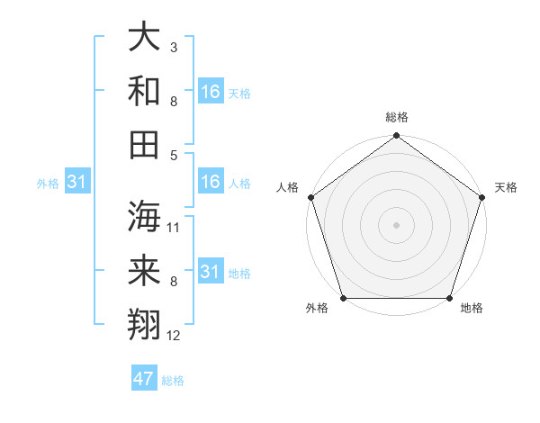 大和田 海来翔さんの天格は16画の5点!