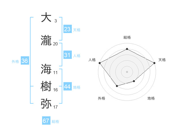 大瀧 海樹弥さんの総格は67画の4点!