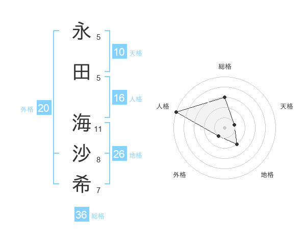 永田 海沙希さんの人格は16画の5点!