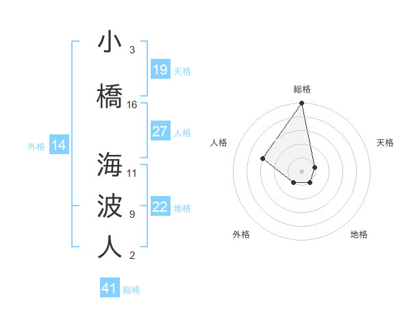 小橋 海波人さんを姓名の画数から五運を鑑定