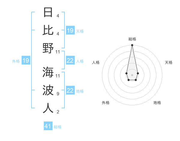 日比野 海波人さんを姓名の画数から五運を鑑定