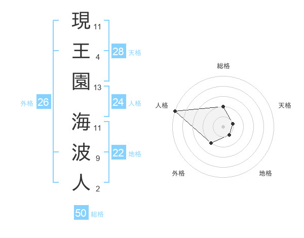 現王園 海波人さんを姓名の画数から五運を鑑定
