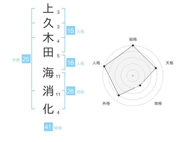 上久木田 海消化さんを姓名の画数から五運を鑑定