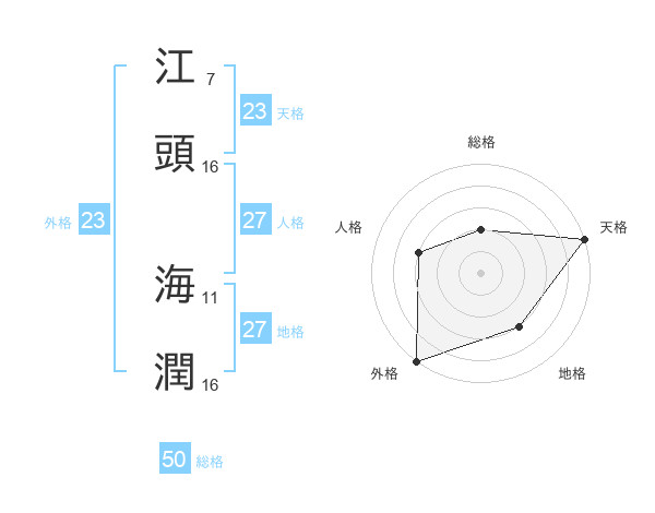 江頭 海潤さんの総格は50画の2点!