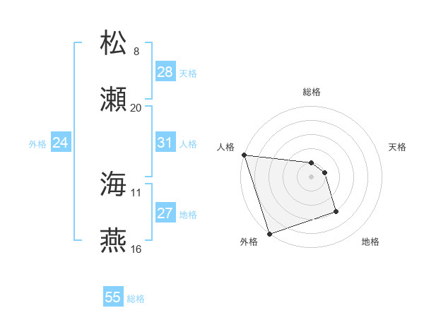 松瀬 海燕さんを姓名の画数から五運を鑑定