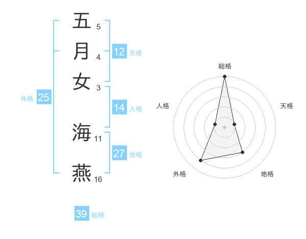 五月女 海燕さんを姓名の画数から五運を鑑定
