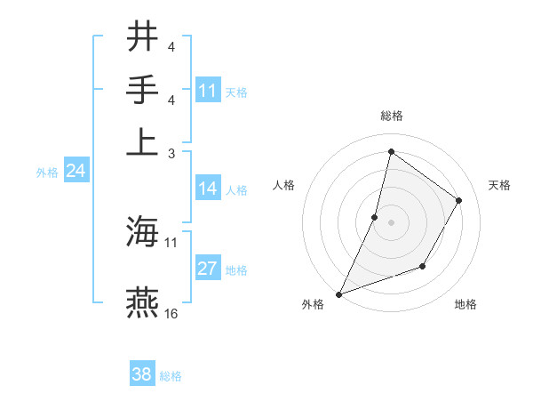 井手上 海燕さんを姓名の画数から五運を鑑定