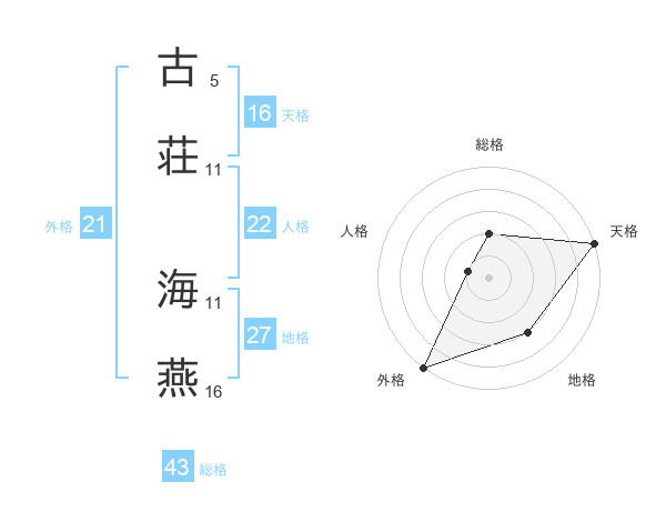 古荘 海燕さんの人格は22画の1点!