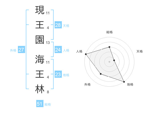現王園 海王林さんを姓名の画数から五運を鑑定