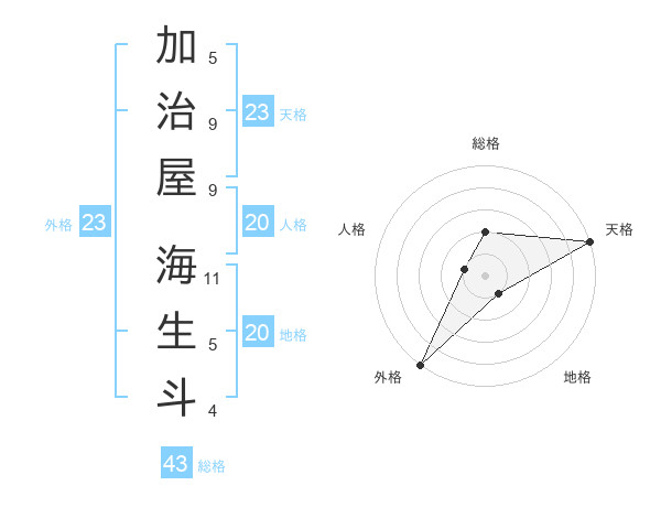 加治屋 海生斗さんの外格は23画の5点!