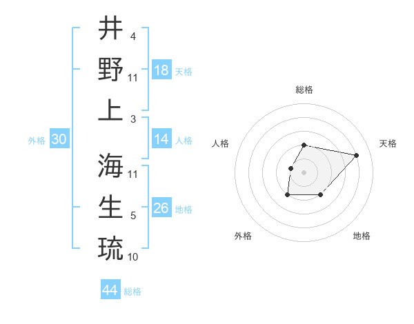 井野上 海生琉さんを姓名の画数から五運を鑑定