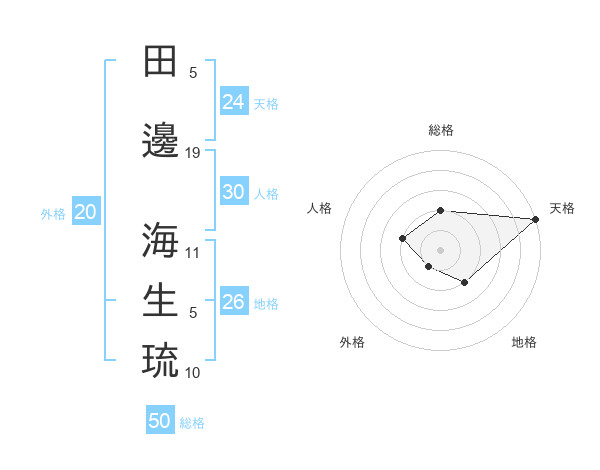田邊 海生琉さんを姓名の画数から五運を鑑定