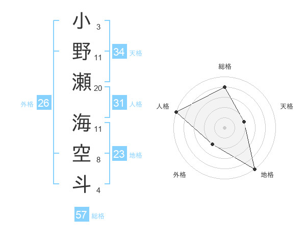 小野瀬 海空斗さんを姓名の画数から五運を鑑定