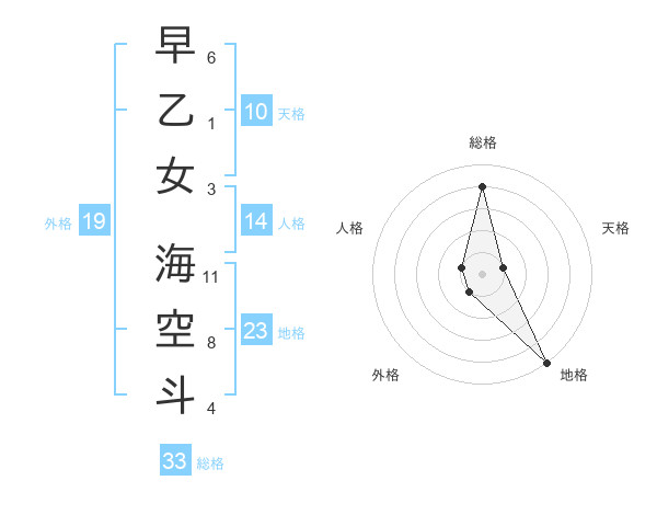 早乙女 海空斗さんの総格は33画の4点!