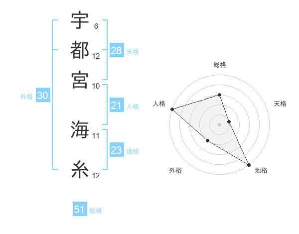 宇都宮 海糸さんを姓名の画数から五運を鑑定