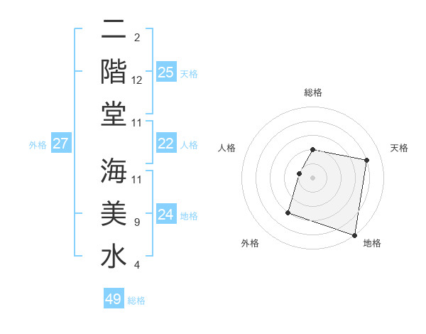 二階堂 海美水さんの天格は25画の4点!