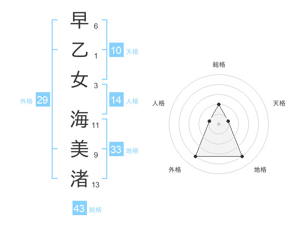 早乙女 海美渚さんを姓名の画数から五運を鑑定