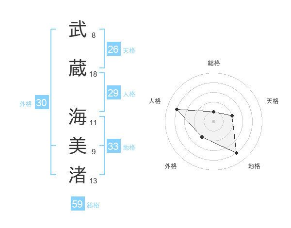 武蔵 海美渚さんを姓名の画数から五運を鑑定