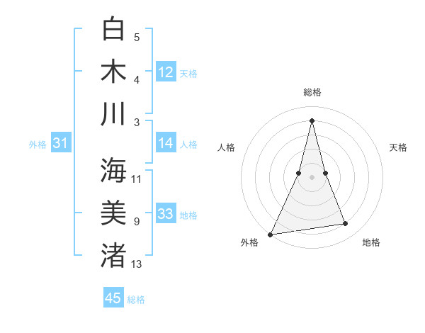 白木川 海美渚さんを姓名の画数から五運を鑑定