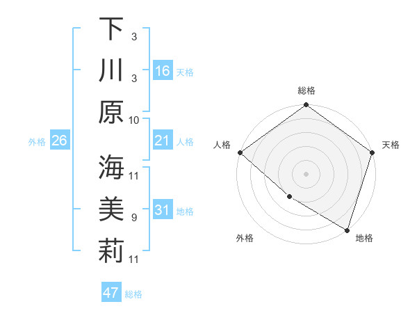 下川原 海美莉さんを姓名の画数から五運を鑑定