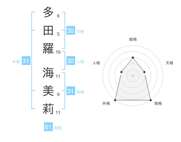 多田羅 海美莉さんを姓名の画数から五運を鑑定