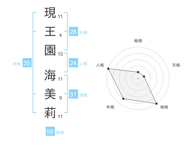 現王園 海美莉さんを姓名の画数から五運を鑑定