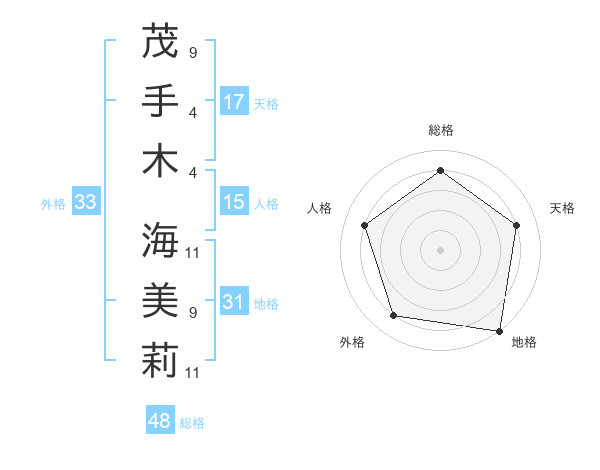 茂手木 海美莉さんを姓名の画数から五運を鑑定