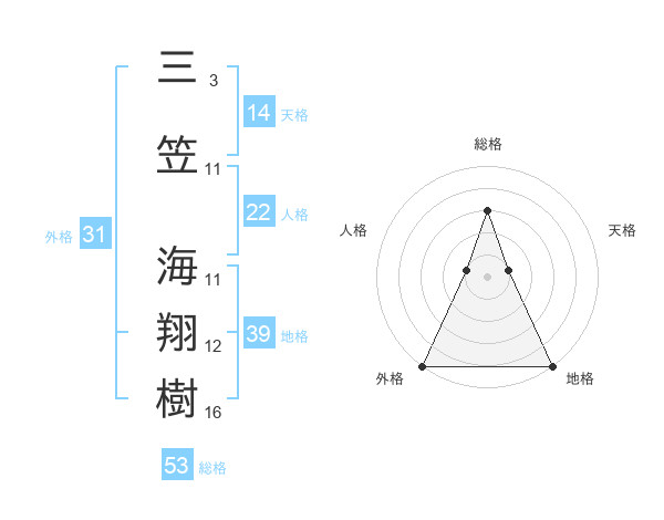三笠 海翔樹さんの総格は53画の3点