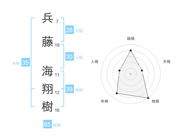 兵藤 海翔樹さんを姓名の画数から五運を鑑定