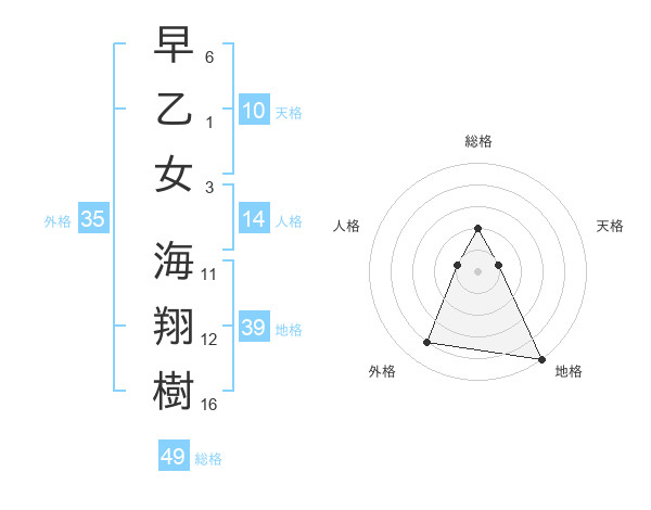 早乙女 海翔樹さんを姓名の画数から五運を鑑定