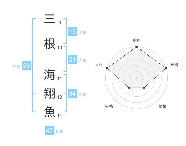 三根 海翔魚さんの総格は47画の5点!