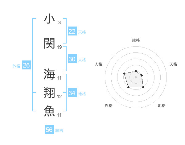 小関 海翔魚さんを姓名の画数から五運を鑑定