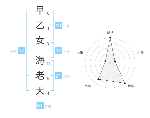 早乙女 海老天さんを姓名の画数から五運を鑑定