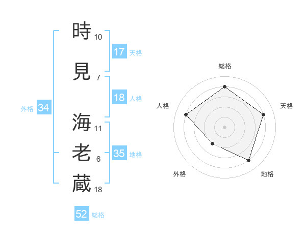 時見 海老蔵さんの外格は34画の2点!