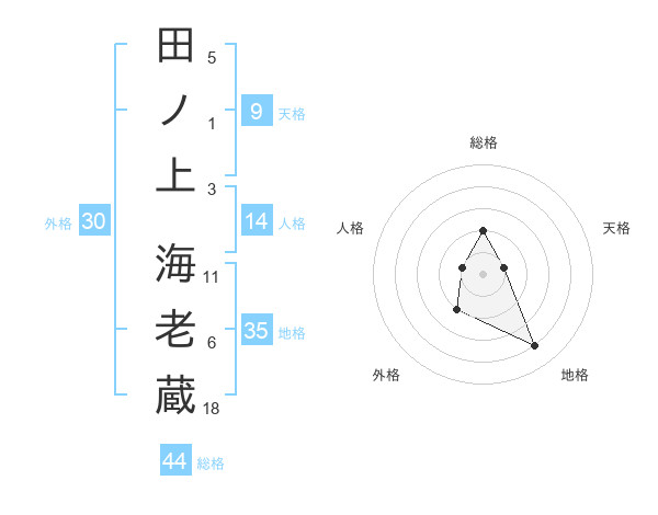 田ノ上 海老蔵さんの総格は44画の2点