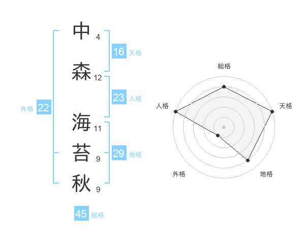 中森 海苔秋さんを姓名の画数から五運を鑑定