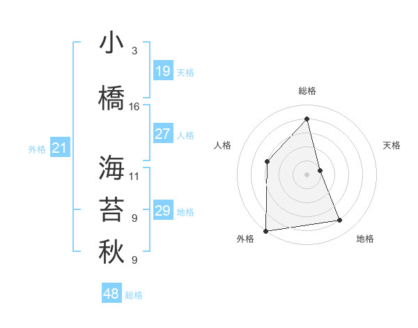 小橋 海苔秋さんの総格は48画の4点!