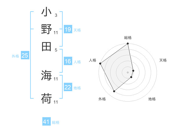 小野田 海荷さんを姓名の画数から五運を鑑定