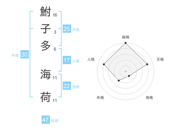 鮒子多 海荷さんを姓名の画数から五運を鑑定