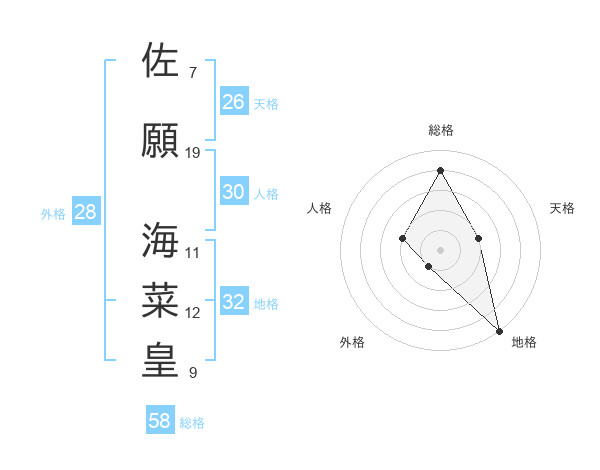 佐願 海菜皇さんの総格は58画の4点!